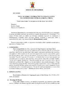Notícias da Diocese 27 de março de 2020 Of. 22/2020 NOTA 03 SOBRE CELEBRAÇÕES NA SEMANA SANTA NO CONTEXTO DO COVID-19 (CORONA VÍRUS) LEIA MAIS