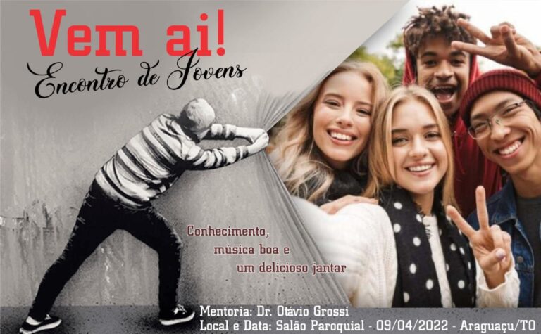 Eventos, Galeria de Fotos, Galeria de Vídeos, Notícias da Diocese, Noticias da Igreja, Notícias das Paróquias, Pastorais e Movimentos, Sem categoria 31 de março de 2022 VEM AI-ENCONTRO DE JOVENS-ARAGUAÇU/TO LEIA MAIS