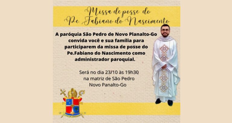 Destaque, Eventos, Notícias da Diocese, Notícias das Paróquias 3 de outubro de 2022 Missa de Posse do Pe. Fabiano Nascimento na Paróquia São Pedro, Novo Planalto-GO LEIA MAIS
