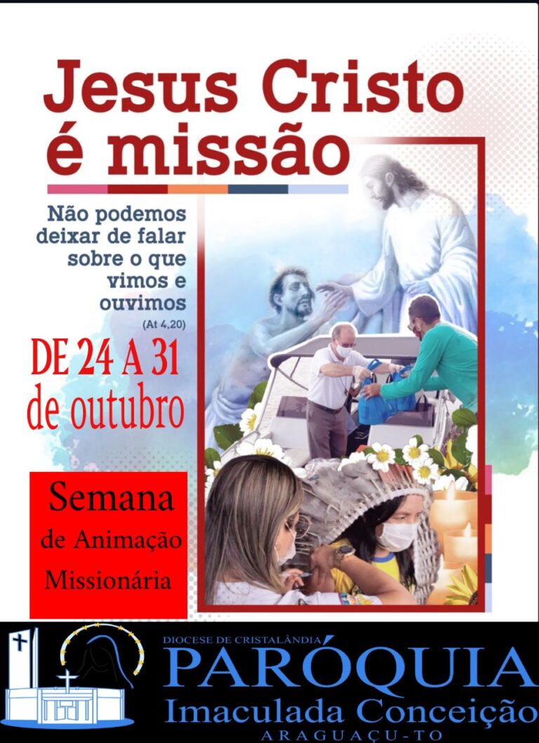 Eventos, Galeria de Fotos, Notícias das Paróquias, Pastorais e Movimentos 19 de outubro de 2021 SEMANA DE ANIMAÇÃO MISSIONÁRIA EM ARAGUAÇU-TO – 24 a 31 de outubro de 2021 LEIA MAIS