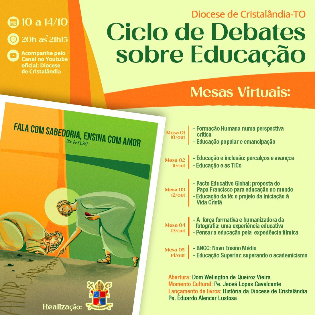 O Ciclo de Debates sobre Educação é uma ação promovida pela Diocese de Cristalândia-TO e contará com professores de diferentes lugares do Brasil.
