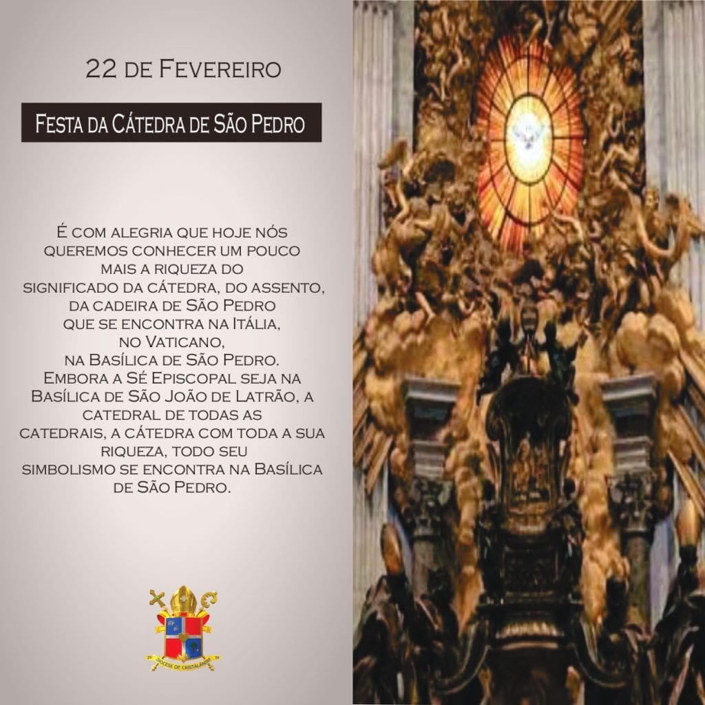É com alegria que hoje nós queremos conhecer um pouco mais a riqueza do significado da cátedra, do assento, da cadeira de São Pedro que se encontra na Itália, no Vaticano, na Basílica de São Pedro. Embora a Sé Episcopal seja na Basílica de São João de Latrão, a catedral de todas as catedrais, a cátedra com toda a sua riqueza, todo seu simbolismo se encontra na Basílica de São Pedro.