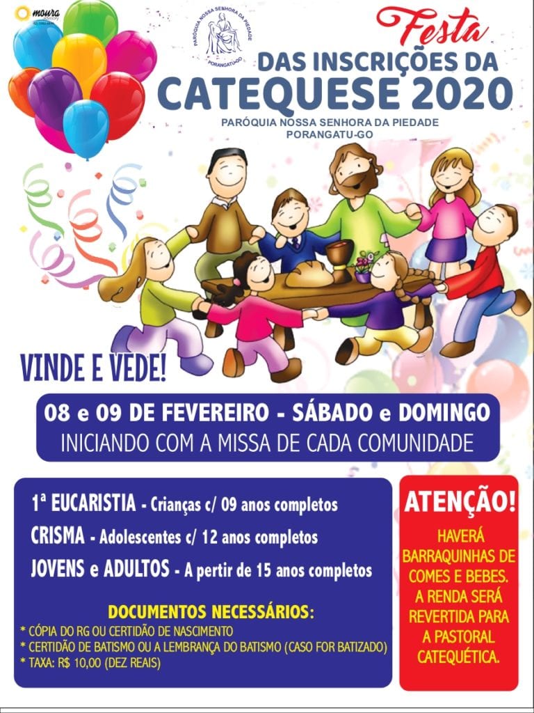 FESTA DAS INSCRIÇÕES PARA CATEQUESE 2020 | Paróquia Nossa Senhora da Piedade – Porangatu-GO