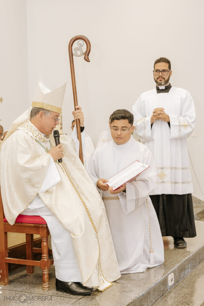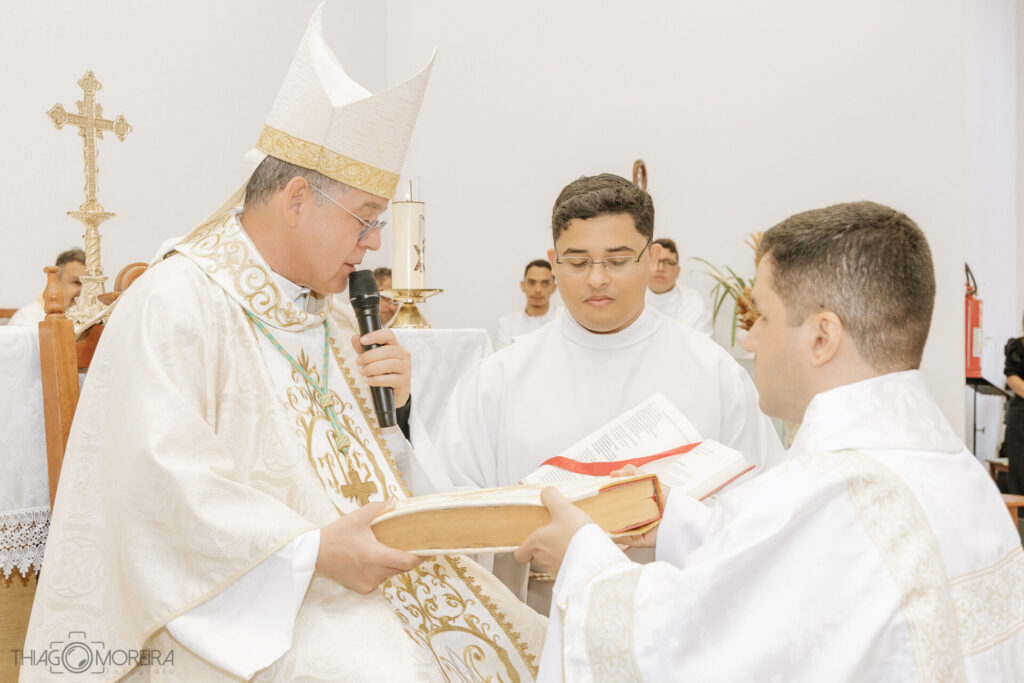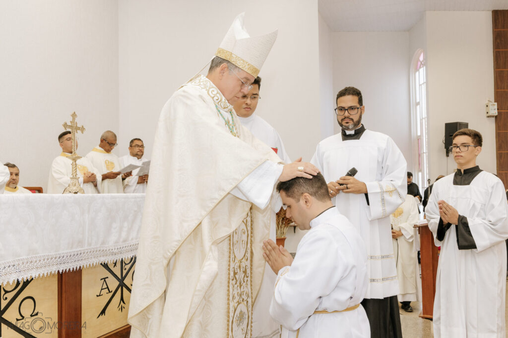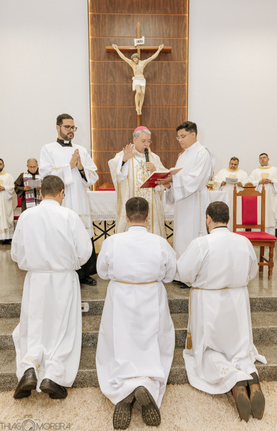 Além do que ocorreu na celebração, é oportuno evocar o que a Igreja ensina a respeito do diácono. A ordenação dos diáconos destina-se ao serviço. “No grau inferior da hierarquia, encontram-se os diáconos. As mãos lhes são impostas ‘não para o sacerdócio, mas para o serviço. ’” (Catecismo da Igreja Católica n.1569). “Cabe aos diáconos, entre outros serviços, assistir o Bispo e os padres na celebração dos divinos mistérios, sobretudo na Eucaristia; distribuir a Comunhão; assistir ao Matrimônio e abençoá-lo; proclamar o Evangelho e pregar; presidir os funerais; consagrar-se aos diversos serviços da caridade” (Catecismo da Igreja Católica n.1569). Em síntese, o diácono configurado a Cristo servidor de todos, pela recepção do primeiro grau da ordem é: “ministro da palavra, do altar e da caridade” (Ritual de bênçãos, n.18).